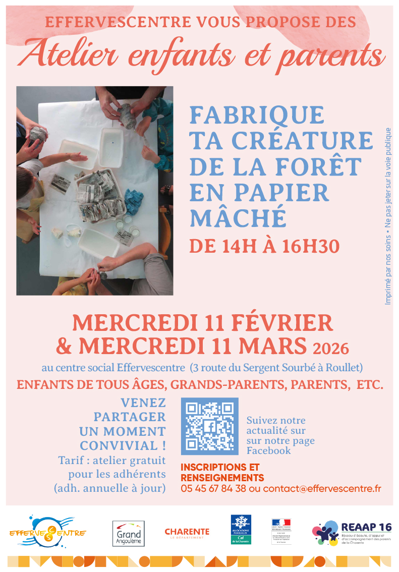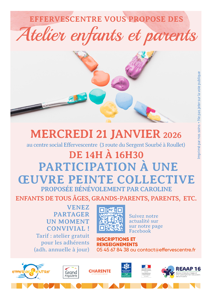 Dans la continuité de la belle dynamique des ateliers Enfants / parents tout au long de l’année 2025, Effervescentre démarre 2026 avec une proposition sous le signe de la créativité, de la rencontre et du plaisir d’être ensemble 🎨🍂