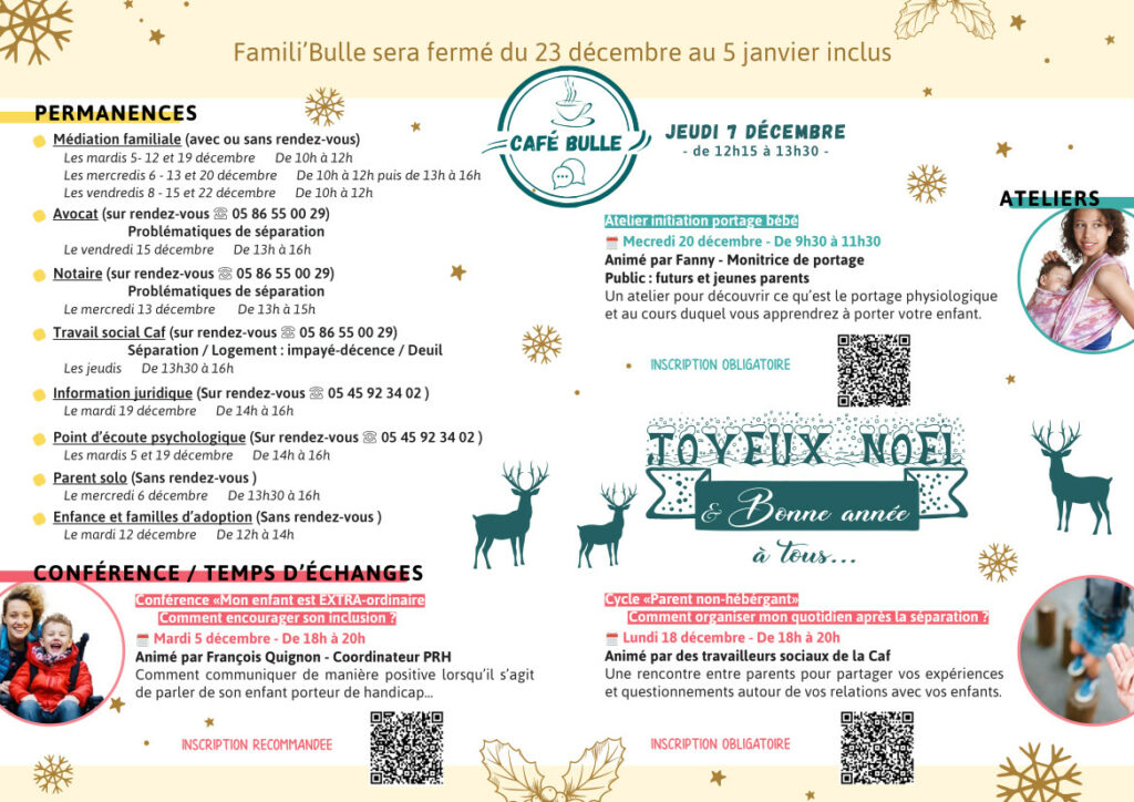 Rendez-vous le samedi 29 novembre et le 29 décembre. Et pour couronner le tout, un atelier lien parent/enfant sera également au programme ce jour-là. Un cadeau qui ne fera pas que jongler avec les idées !