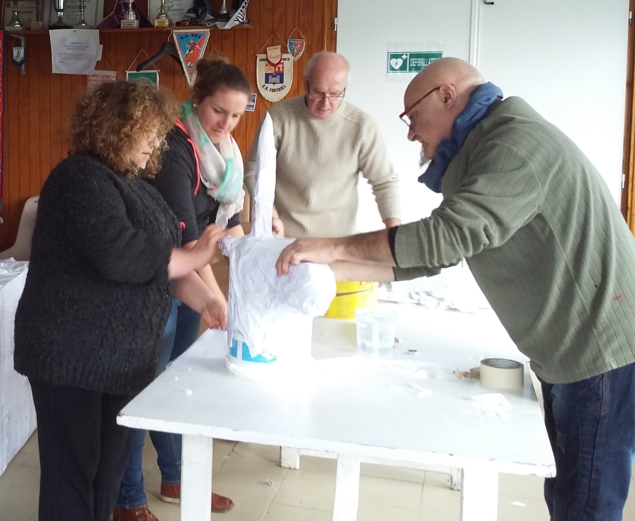 Avec les membres de l’association, nous avons recommencé à nous retrouver dans l’ancien club house du foot à la salle Gilles Ploquin pour préparer le prochain carnaval.