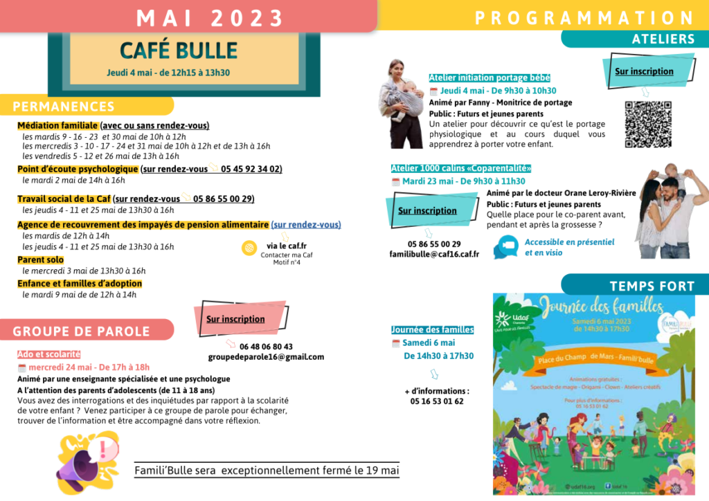 Permanences, temps forts… Découvrez toute l’actualité de Famili’Bulle du mois de novembre en cliquant sur les images ci-dessous