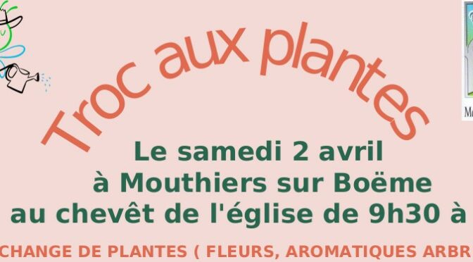 Le Troc Plantes se tiendra le Samedi 8 avril le matin de 9h30 à 12h30 place du chevet de l’église