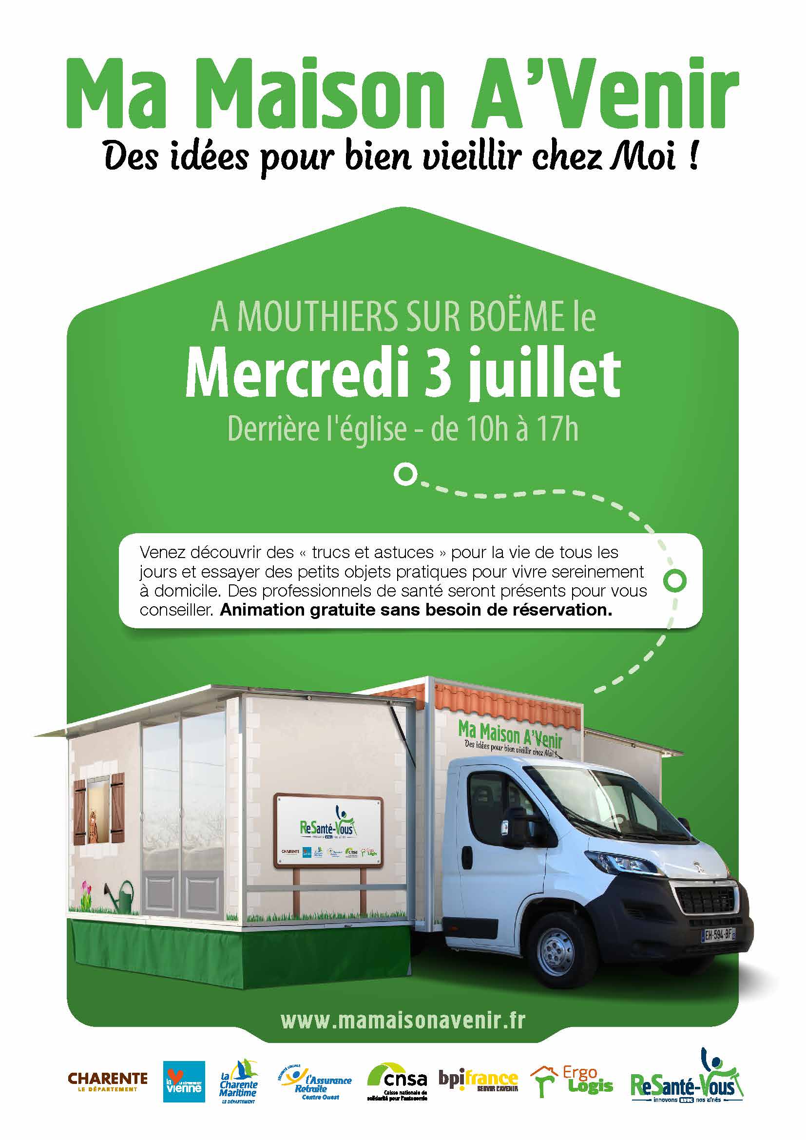 Cette «animation» est entièrement gratuite. Nous vous invitons donc à venir nombreux, que vous soyez «âgé» ou non, particulier, aidant proche ou professionnel, nous vous invitons à participer à cette animation gratuite. Pour tous renseignements, n’hésitez pas à contacter la mairie aux horaires habituels d’ouverture. Si vous ne pouvez pas être présent, et avez des questions sur l’aménagement de votre logement, vous pouvez toujours contacter ReSanté-Vous au 05 49 52 24 17. Retrouvez toutes les dates mais aussi des photos et vidéos de Ma Maison A’Venir sur : www.mamaisonavenir.fr