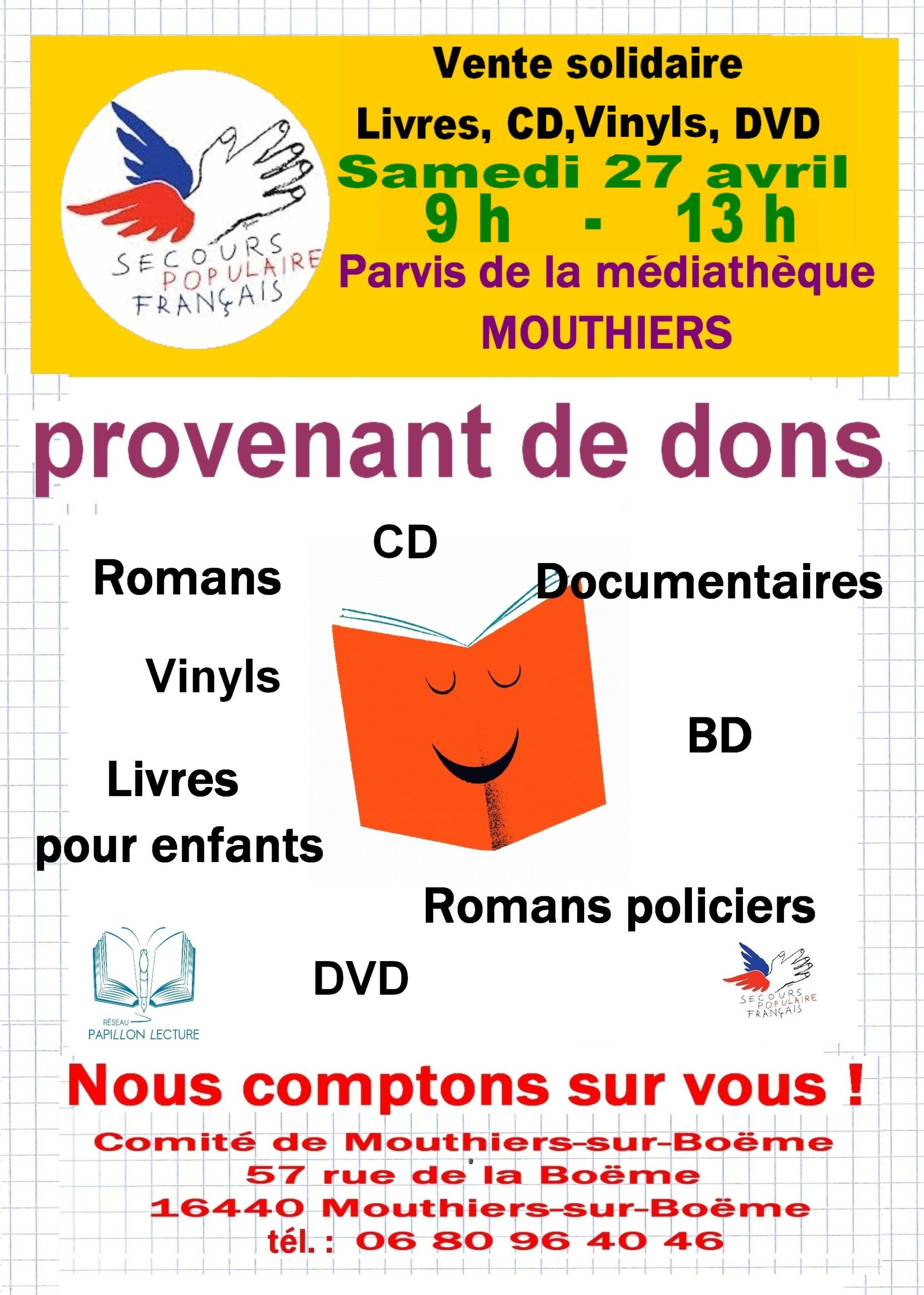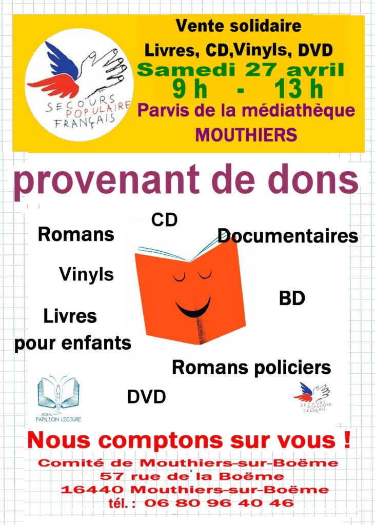 Secours populaire, Solidarité vente de livres, CD, Vynils, DVD. 18 avril 2024 Michèle Lhomme Laisser un commentaire