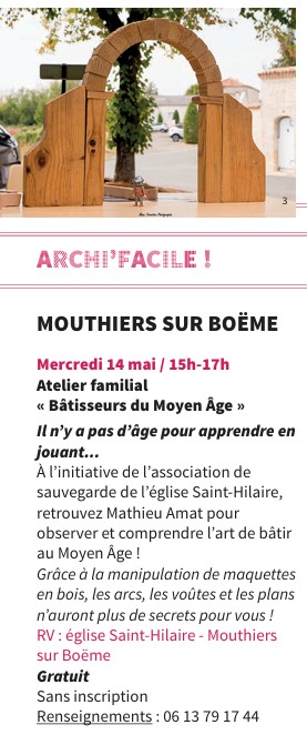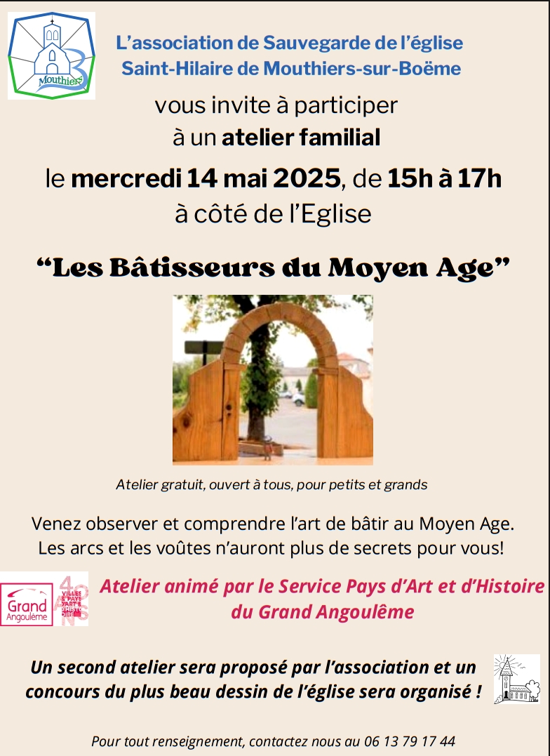 Les associations culturelles, Patrimoine, Pays d'art et d'histoire Angoulême Atelier « Les bâtisseurs du moyen âge » 11 avril 2025 Michèle Lhomme Laisser un commentaire
