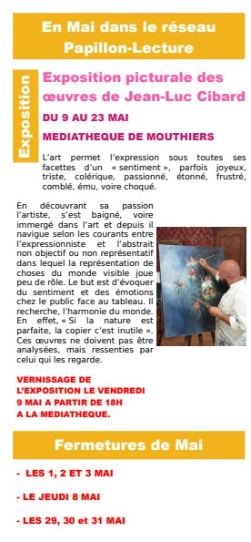 – Du 9 au 23 Mai à la médiathèque de Mouthiers :