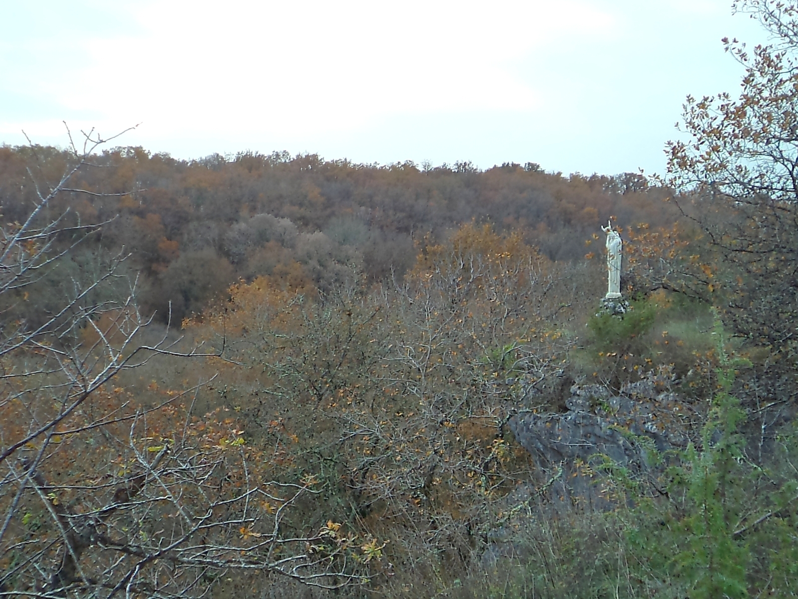 Là, sur la falaise, on trouve une vierge à l’enfant.
