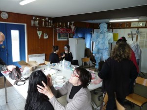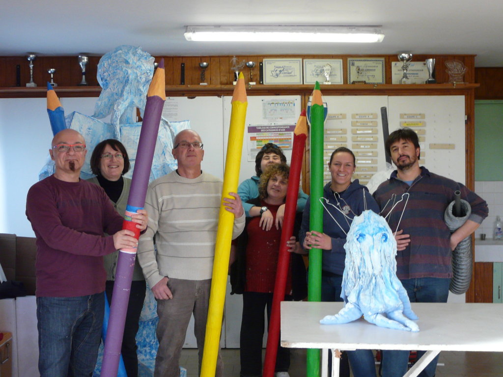 Depuis le début du mois de janvier, les membres de l’association Carnaval de Mouthiers travaillent à la préparation du prochain carnaval dans l’ancien club house du club de foot à la salle Gilles Ploquin. Tous les samedis, ils se réunissent afin de créer les personnages et les costumes que nous utiliserons pendant les 6 carnavals de l’intercom’.