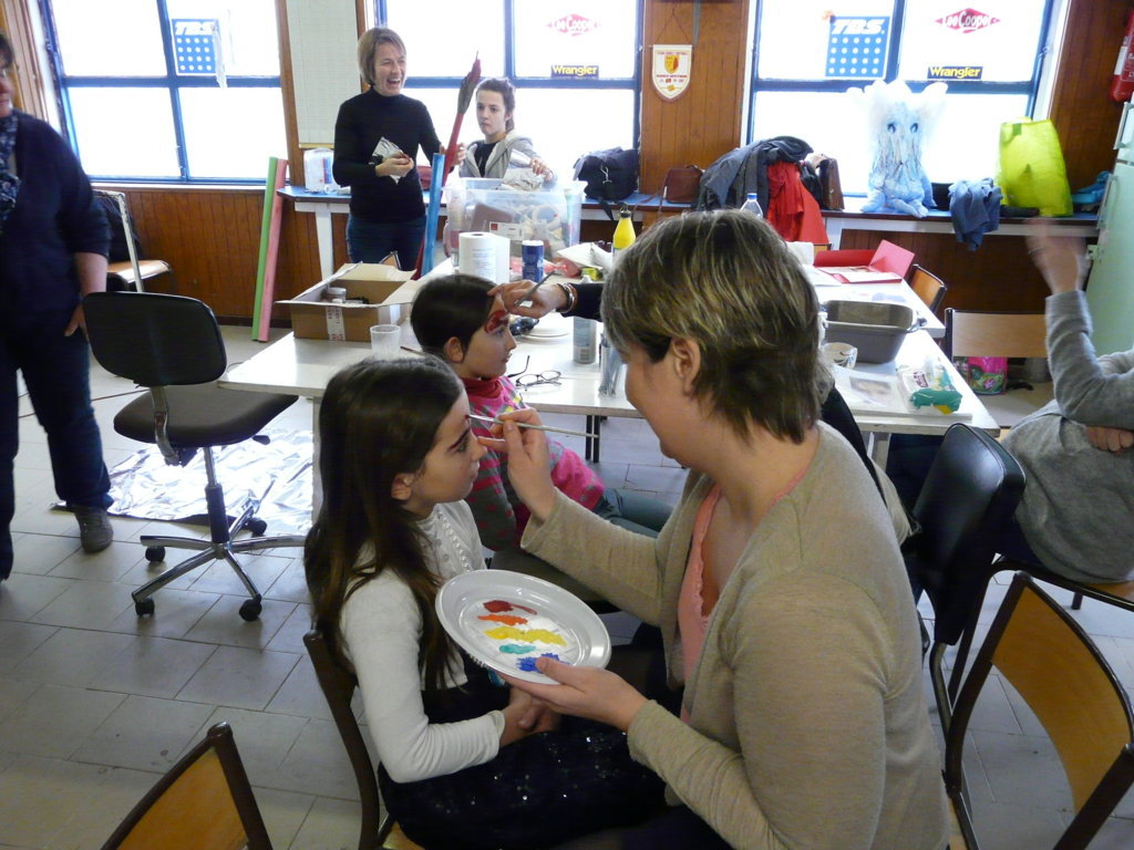Cette année encore, l’association Carnaval a fait appel à une maquilleuse professionnelle, afin d’animer un atelier maquillage où ont été conviés toutes les associations de parents d’élèves de l’intercommunalité.