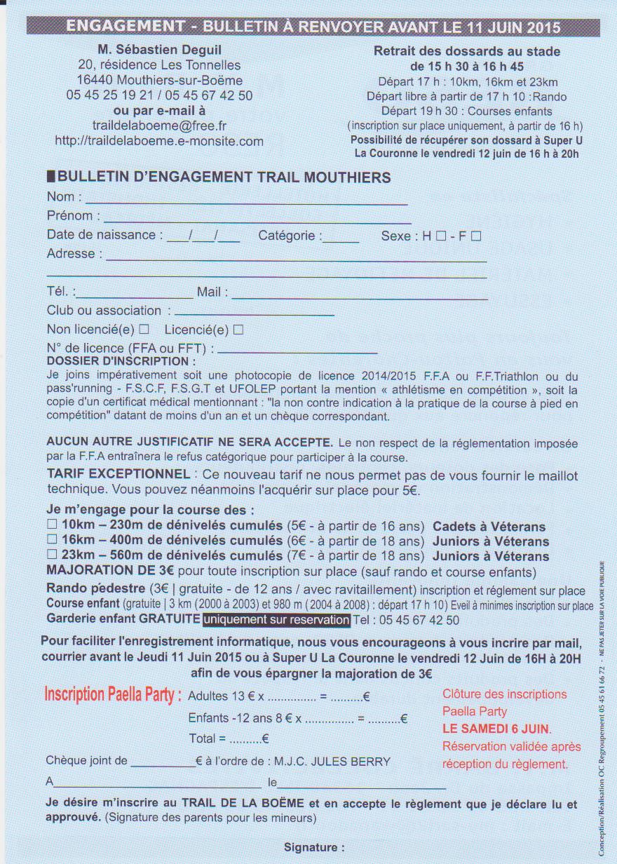 Pour tout renseignement complémentaire sur l’organisation des épreuves voir bulletin d’inscription, formulaire et dépliant en annexe.INSCRIPTIONS : Sébastien Deguil RENSEIGNEMENTS : Christophe Moreau