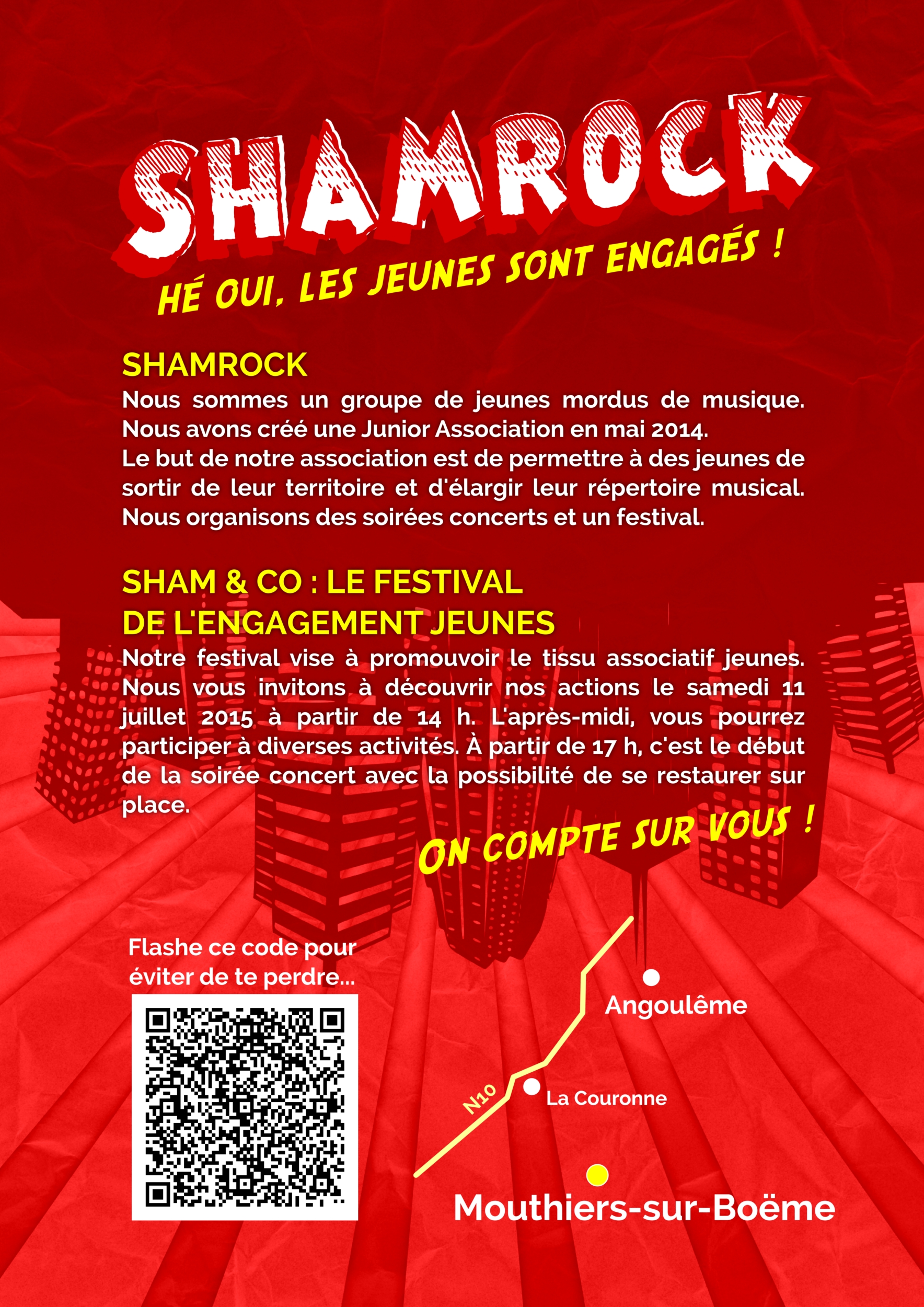 Shamrock c’est : un groupe de jeunes mordus de musique, qui a créé une Junior Association en mai 2014. Cette association permet à des jeunes de sortir de leur territoire et d’élargir leur répertoire musical. Organisation de concerts et d’un festival « Sham & Co »