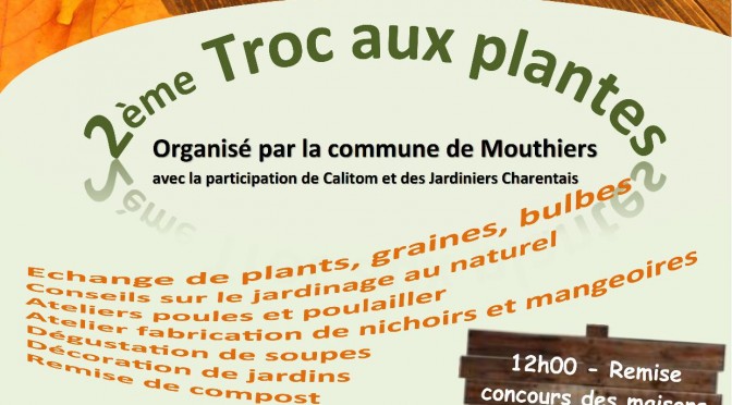 Environnement, Manifestations 2ème troc aux Plantes Image 1 octobre 2015 mbondaz Laisser un commentaire SAMEDI 10 OCTOBRE Place du Champ de Foire 9h-13h