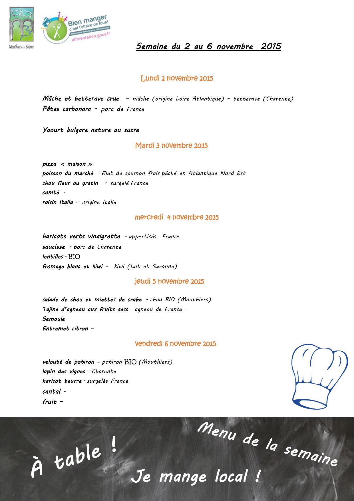 Vie scolaire et vie de l'enfant Menu de la semaine aux écoles Image 3 novembre 2015 mbondaz Laisser un commentaire