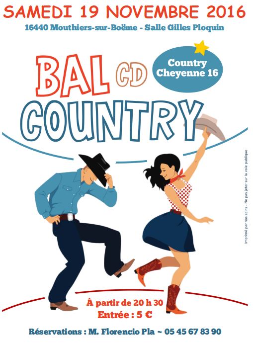 Manifestations BAL COUNTRY 15 novembre 2016 Graziella Relet Laisser un commentaire Samedi 19 novembre 2016 – 20h30 salle Gilles Ploquin. 5 € . Réservation au 05 45 67 83 90.