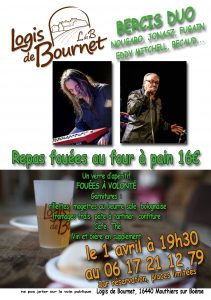 Manifestations 1er avril – Logis de Bournet – Repas Concert 28 mars 2017 mbondaz Laisser un commentaire