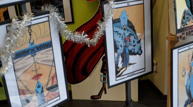 L’exposition, sur le thème des tarots, a été réalisée par les dessinateurs de l’Atelier du Marquis, à Angoulême, et avait été inaugurée au CIBDI lors du festival de 2019.