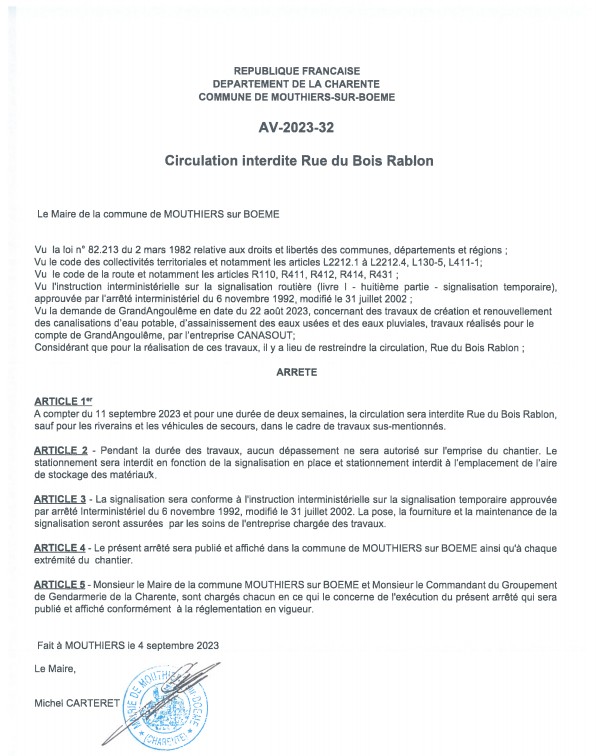 Lors de ces travaux la circulation sera interdite rue du BOIS RABLON, ainsi que le stationnement dans la zone de chantier et alternée rue DES ROIS.
